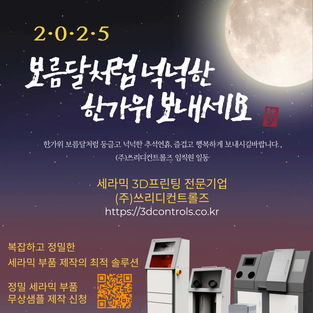 세라믹 3D프린팅 전문 기업, 쓰리디컨트롤즈에서 추석 인사드립니다.